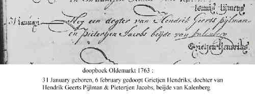 Trouwacte vermeldt Grietje als dochter van Hendrik Swart, overleden, en Maria Peulder, wonende te Krommenie. In de acte van consent wordt haar moeder Mietje Peulder genoemd.