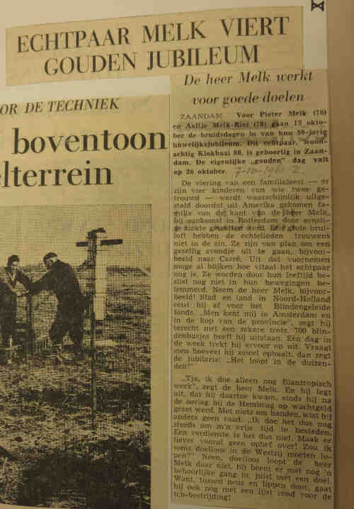Huwelijkse gegevens 1961 Zaandam: Bij hun 50 jarig huwelijk kwam er ook een stukje in de plaatselijke krant.