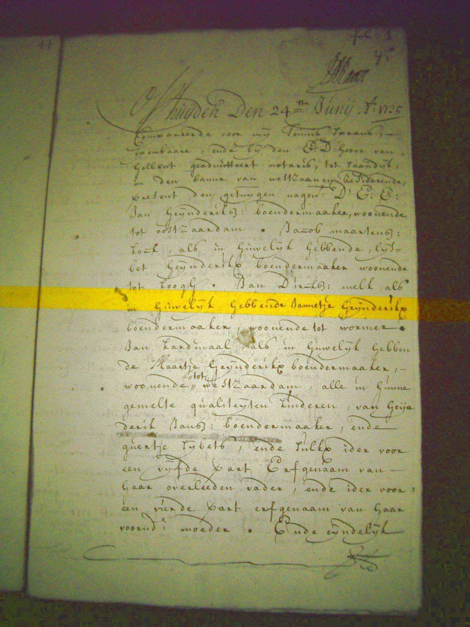 Dirk Jans Melk had in 1696 te Wormerveer als beroep: boek 5798 akte 123