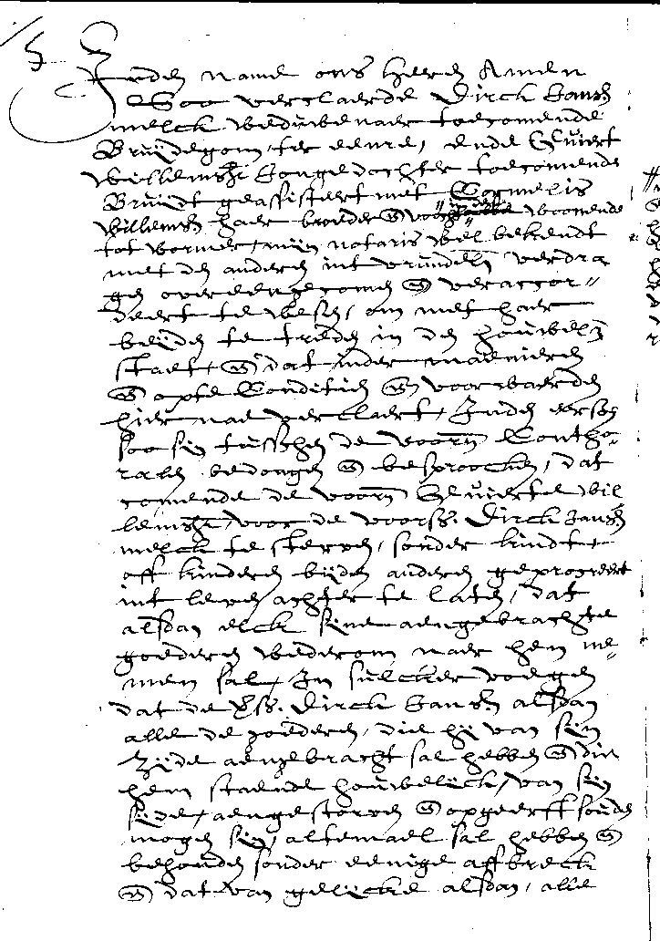 Doch indien Sara overlijdt dan mag Louris boven sijne ingebrachte goederen uijt de nalatenschap van Sara een capitael van 900 Carolus gulden ende den klederen te behouden vande erfgenaemen van Sara.
