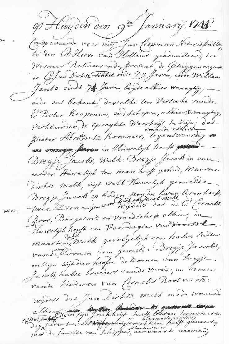 Louris Dircks Melk had in 1715 te Wormer als beroep: notarisakte 5647