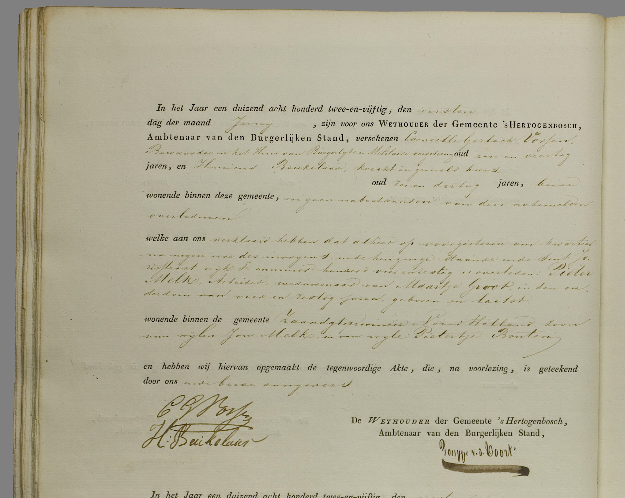 HuwelijksnotitiesBruidegom Pieter Hendrik Melk Beroep bruggenschilder Geboorteplaats Koog aan de Zaan Leeftijd 21 Bruid Femmigje Zomer Geboorteplaats Staphorst Leeftijd 21 Vader van de bruidegom Pieter Melk Beroep Loodgieter Moeder van de bruidegom Grietje Brouwer Vader van de bruid Jan Zomer Beroep spoorwegarbeider Moeder van de bruid Johanna Venema