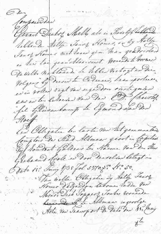 Notarisakten: 6 Op 6-7-1659 te Womer is een akte opgemaakt bij het aangaan van het huwelijk. Zinssnede ervan zijn: